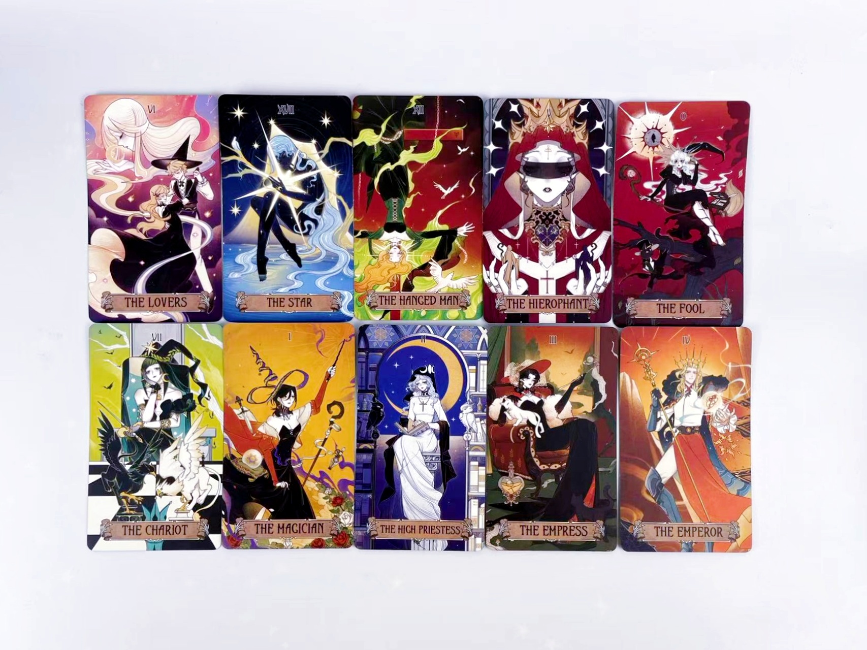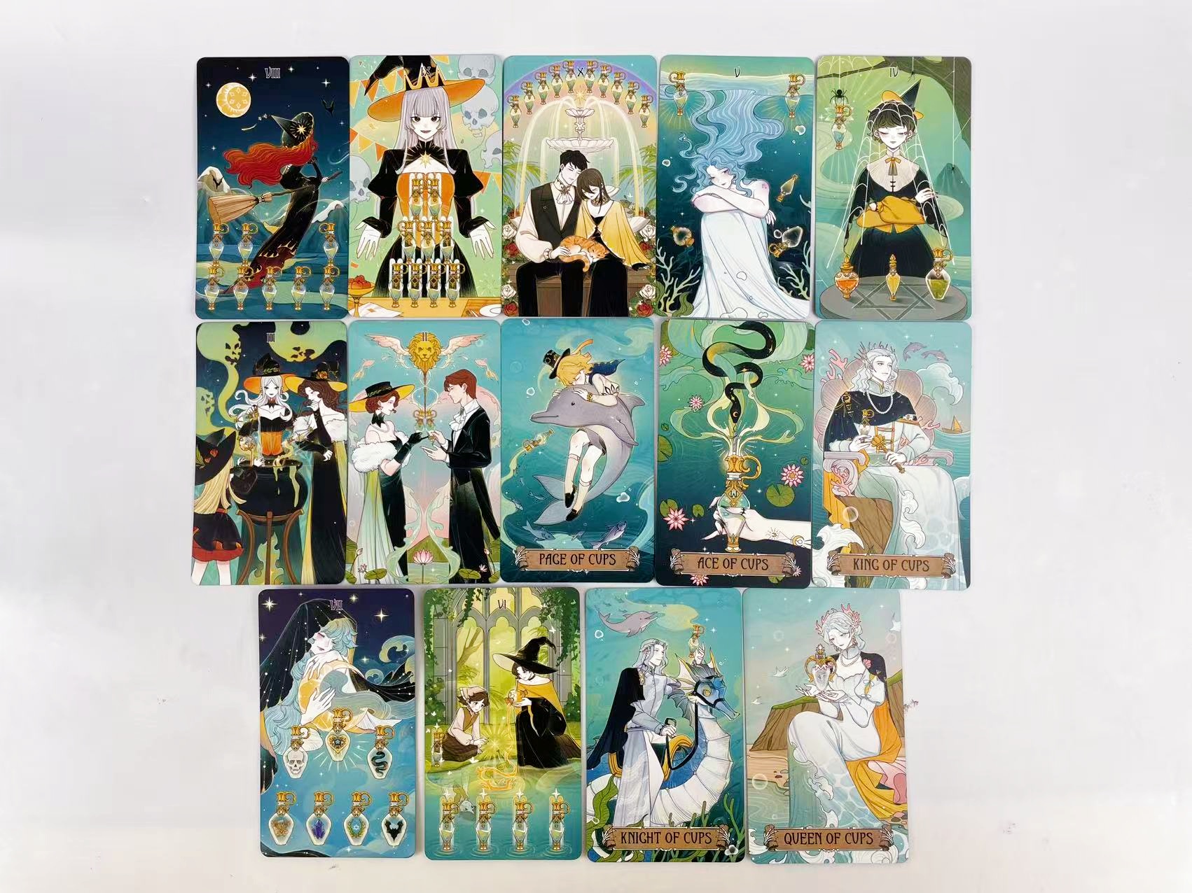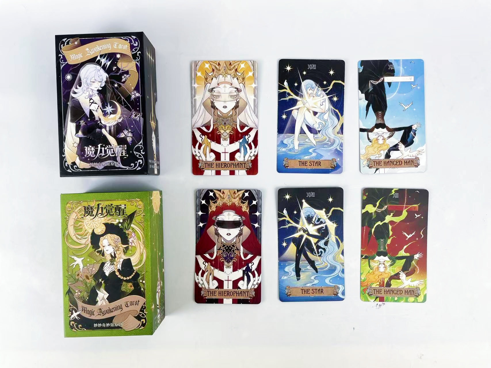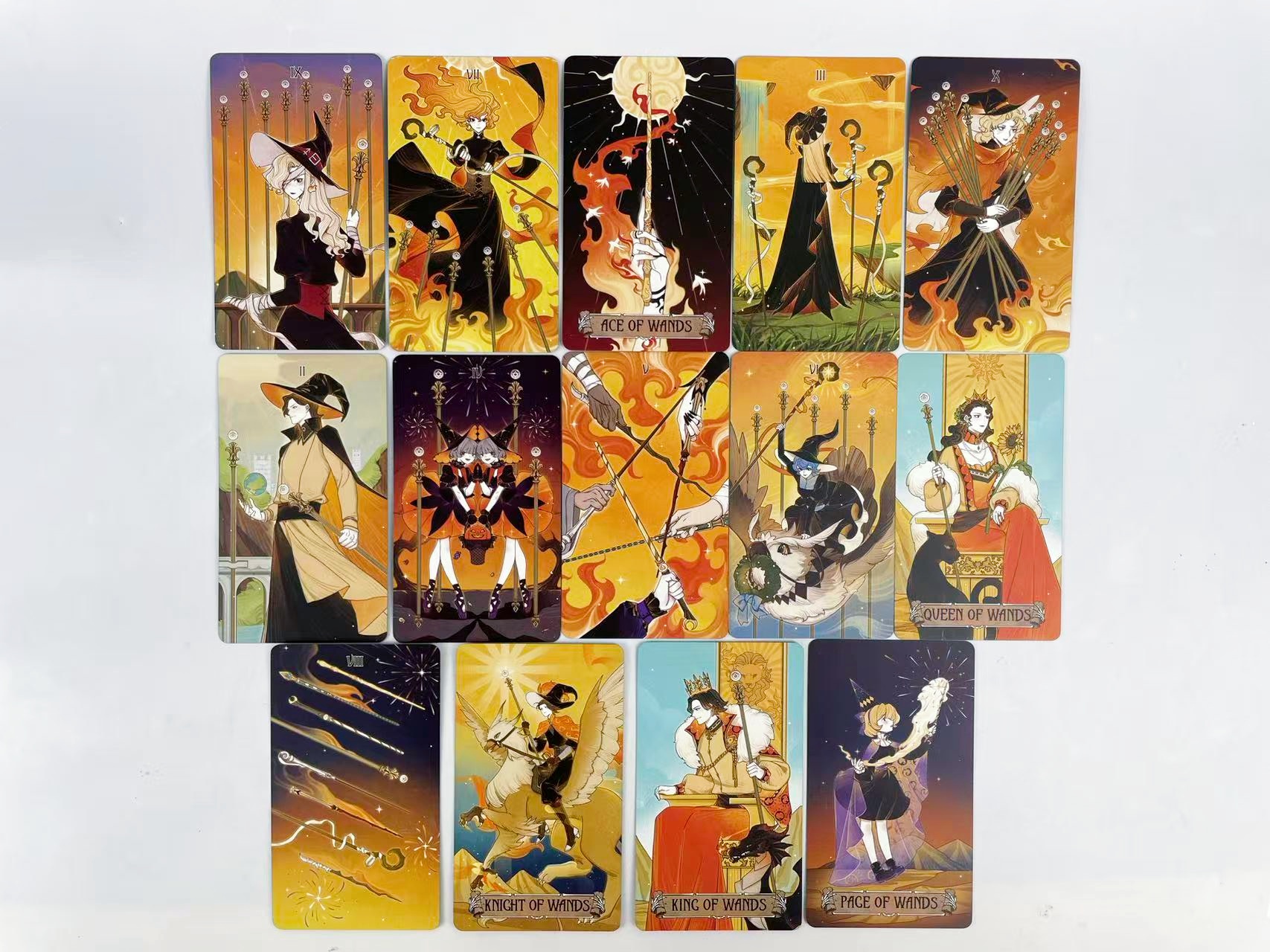 The Tarot deck of the Waite system is set in a magical world view, depicting wizards in a mysterious magical realm. There are two versions available. Please note that the Standard Edition does not include a guidebook and is originally created by us, Magicflower.But we can provide a PDF.