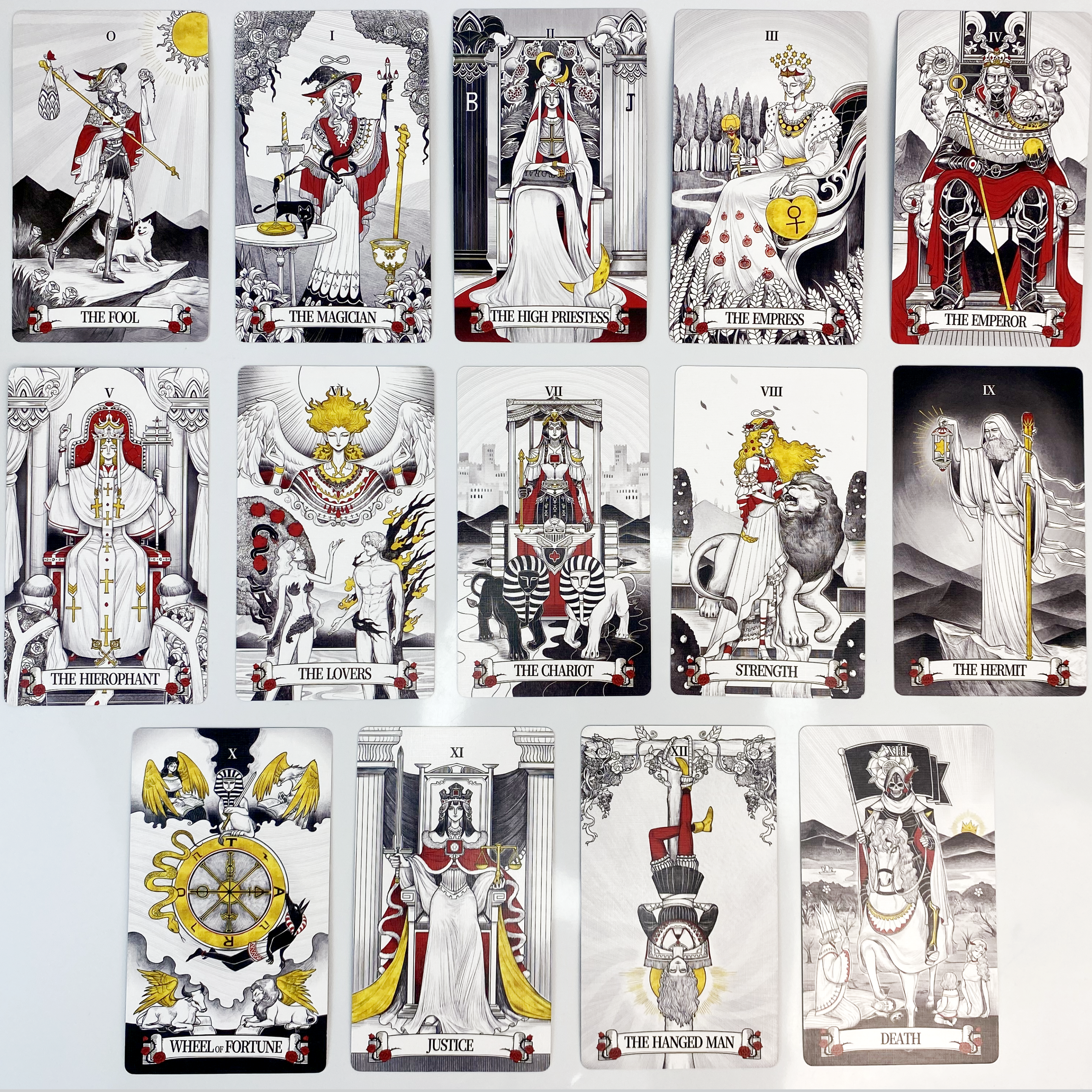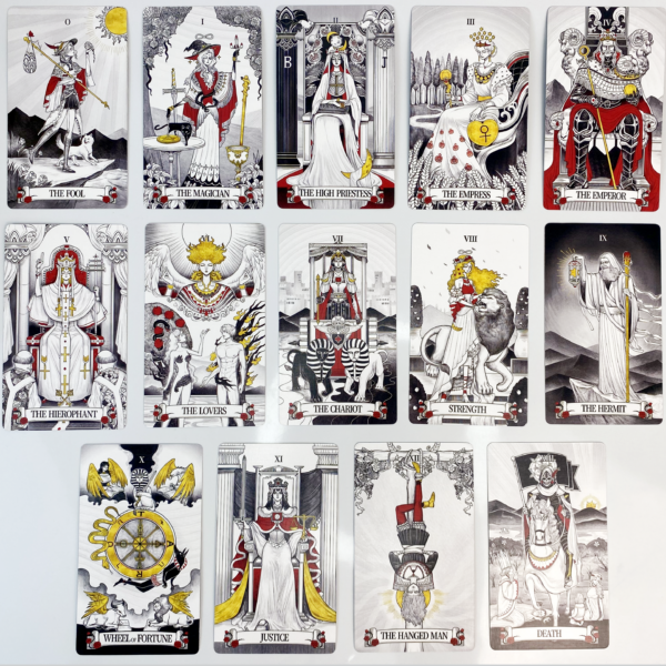The Secret Mirror Tarot B&W comes in two mesmerizing versions: the Monochrome Realm and the upcoming Colorful Realm.