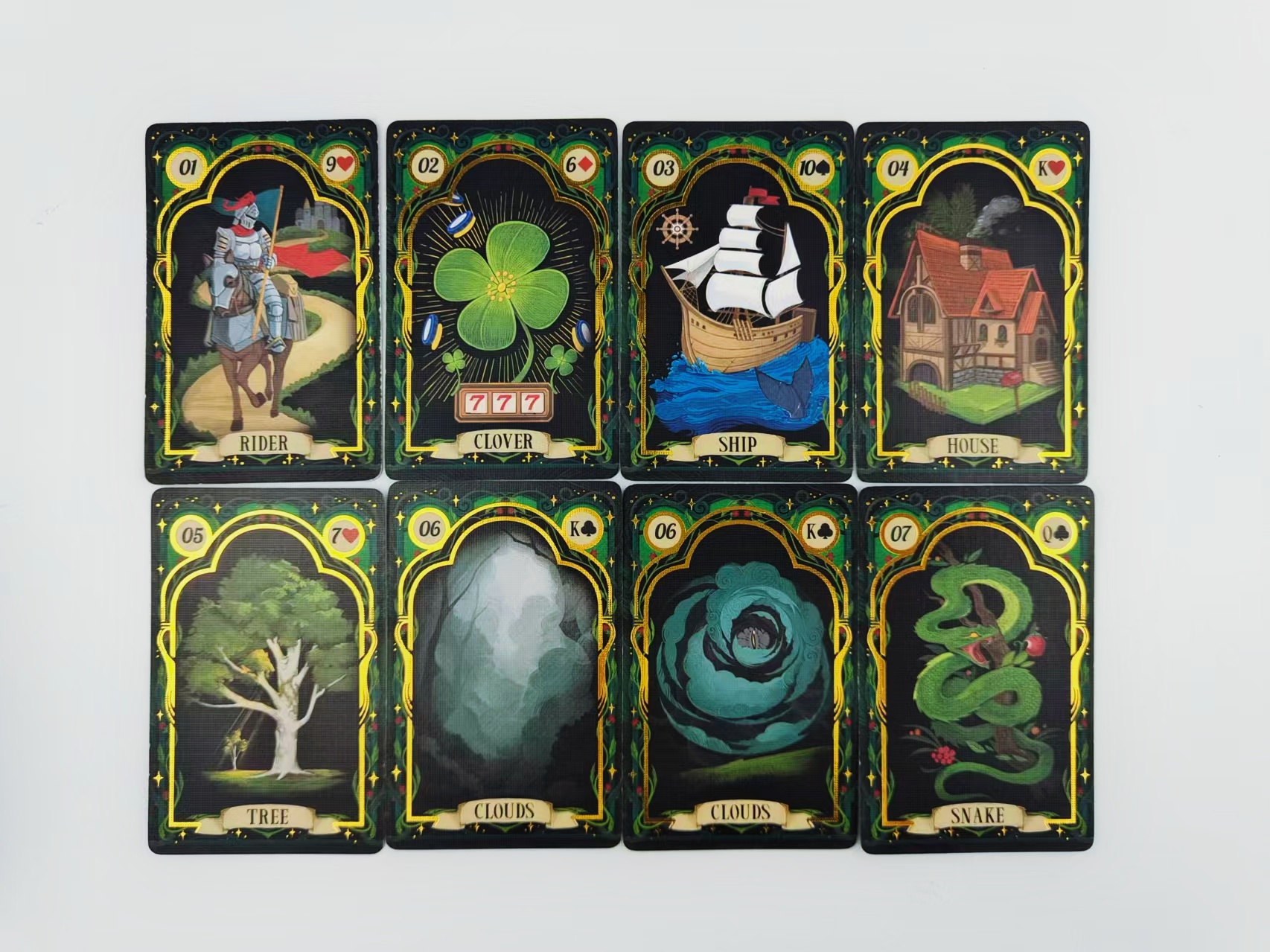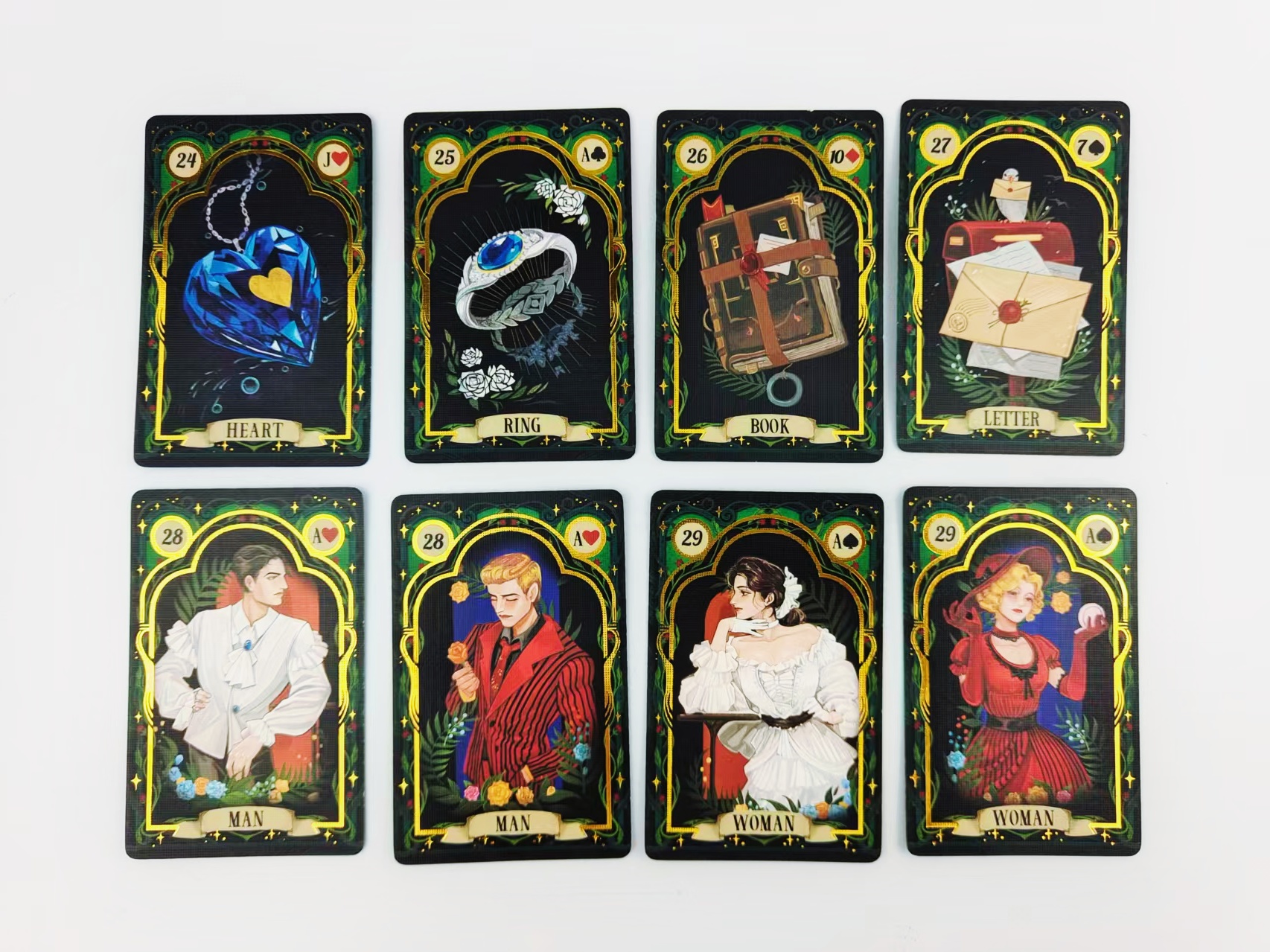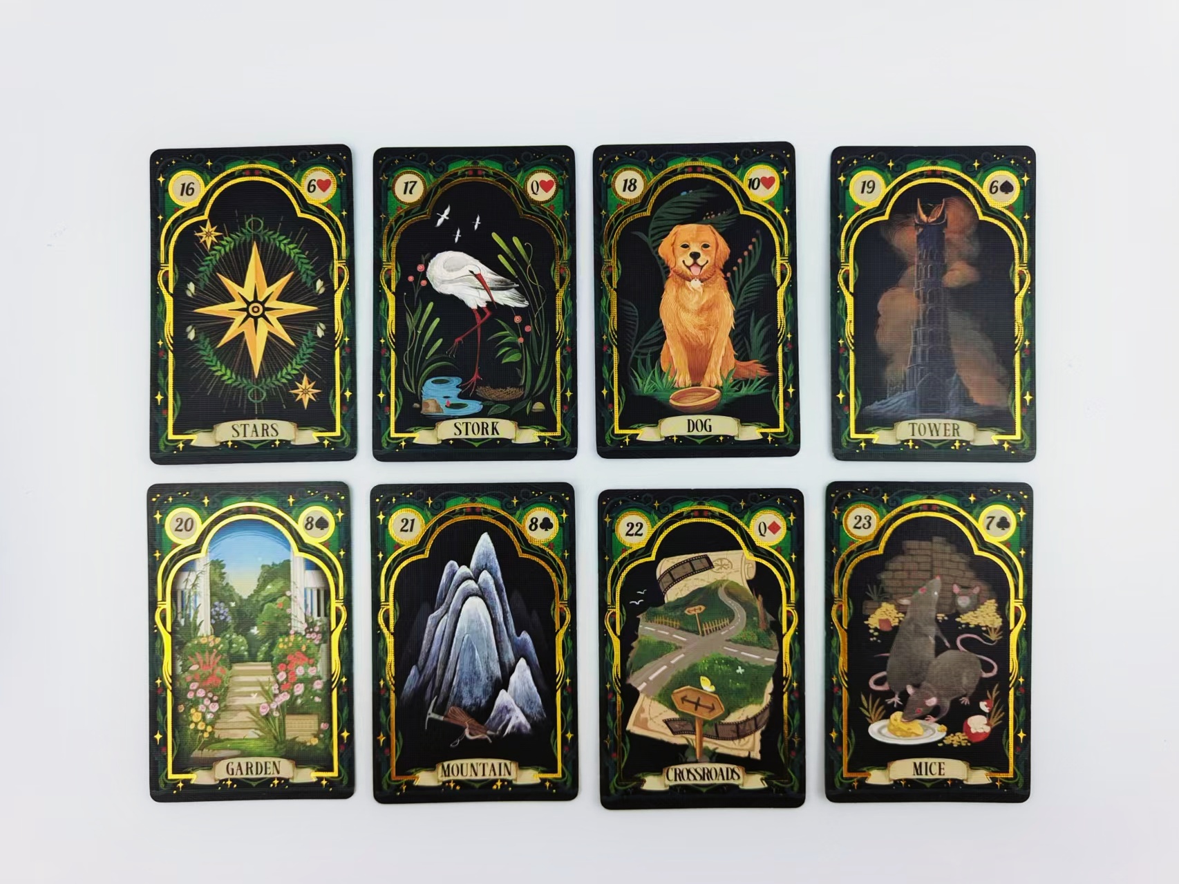A retro-style 40-card Lenormand deck, which can be split into 36 basic cards for use. Inspired by film novels, this deck is originally created by us, Magicflower.